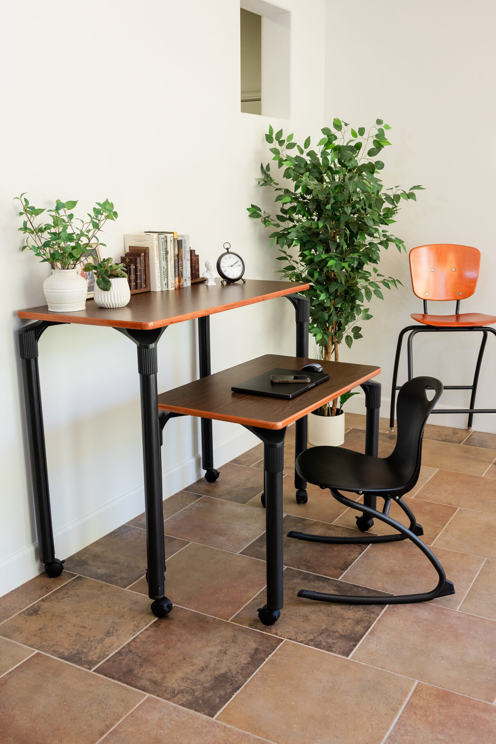 Nesting perfectly below the stand-up desk, the 22″ x 24″ standard size desk is perfect for working on your laptop.