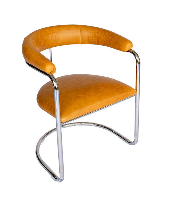 The modern redesign of a classic chair first manufactured in the 60’s combines the strength of a steel frame with the luxury of genuine leather. Built to last, these chairs are hand crafted with the same tools we’ve used in our US factories for the past seven decades. The understated elegance of the curved back profile adds style to any room and also makes the Lorren chair exceptionally comfortable. Available in three leathers: Cafe’, Brown-Olive, or Light-Honey with two frame finish options: chrome or natural steel.